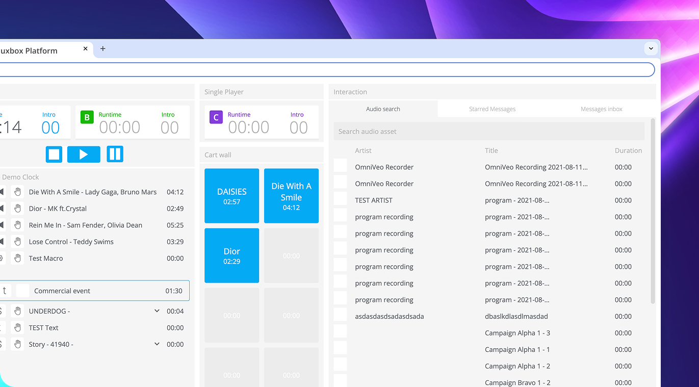 Our Radio Co-Host is designed to centralize live show management, and automation into one intuitive interface, empowering hosts to integrate and control audio players, manage scripts, and coordinate segments in real time. All with the flexibility to add every feature your station needs to run seamless engaging broadcasts.