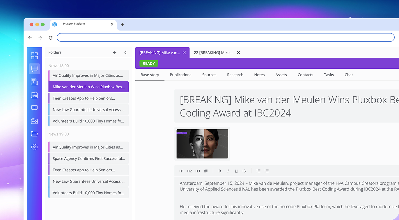 Our fully customizable newsroom is designed to streamline every step of your content workflow, removing fragmented processes, giving your team the flexibility to plan events, create stories, and manage news across multiple platforms, all in one unified solution. That means your newsroom runs faster, smarter, and more efficiently.
